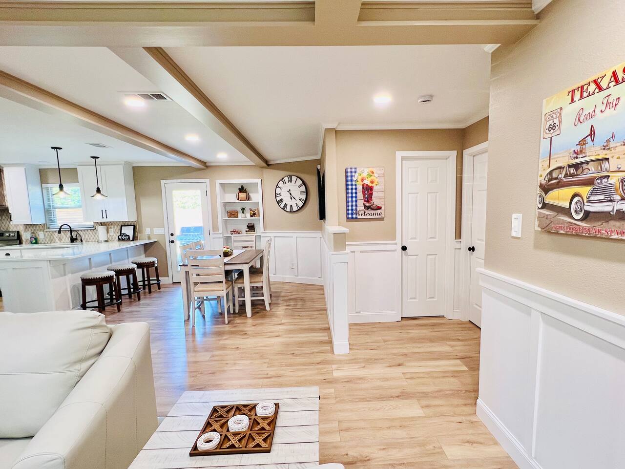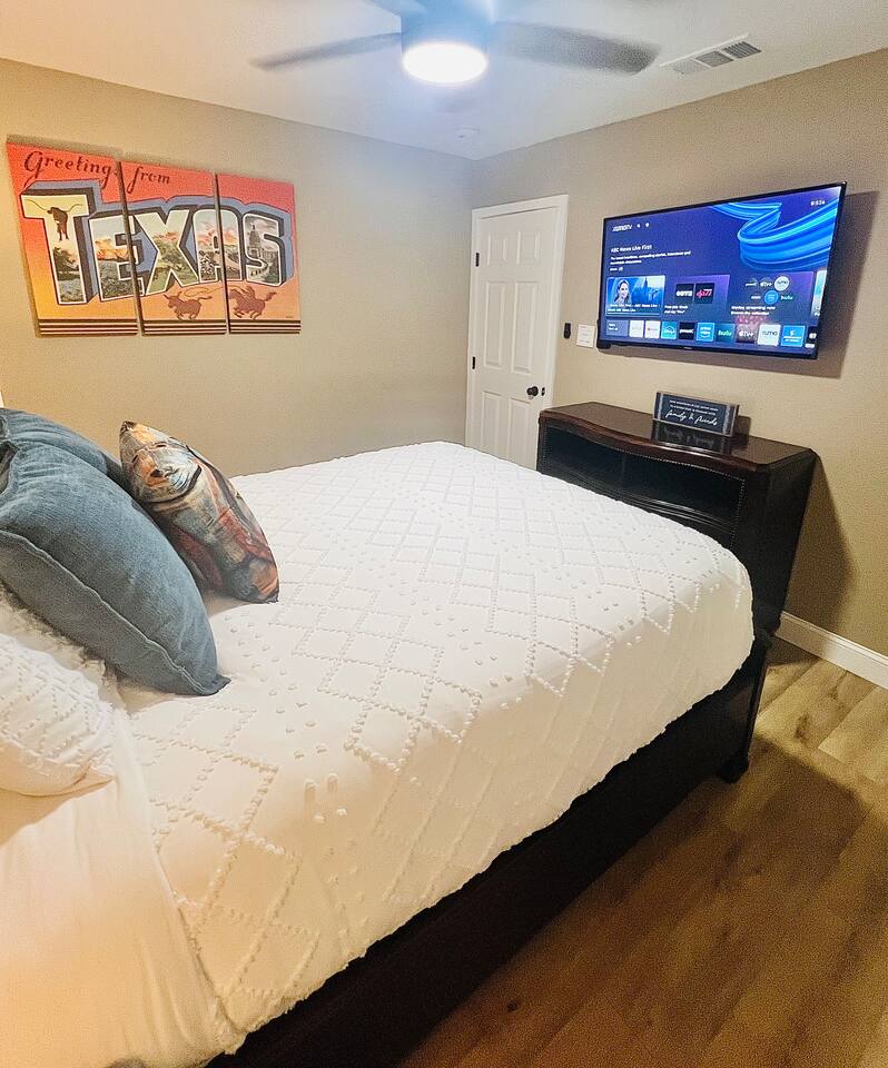 A “Winner’s Retreat” in the entertainment district! This inviting home in the heart of Arlington Texas is a short walk from the backyard to the Cowboys and Rangers stadiums; and a short drive to amusement and water parks, shopping, and restaurants. Ideal for families, sports fans, and travelers on vacation or business looking for a home base near major attractions. The prime location, coupled with updated living spaces and cozy beds, make this home the perfect balance of convenience and comfort.